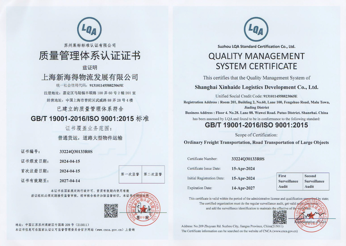 新海得物流嚴(yán)格按現(xiàn)代物流操作流程進(jìn)行標(biāo)準(zhǔn)化運(yùn)作。已通過國際質(zhì)量管理體系ISO9001:2015體系認(rèn)證。運(yùn)用健全的客戶服務(wù)管理系統(tǒng)、車輛管理系統(tǒng),財(cái)務(wù)管理系統(tǒng)。在查詢、監(jiān)控、追蹤、結(jié)算等方面與客戶做到無縫對(duì)接,打造了專業(yè)高效的客戶服務(wù)體系。